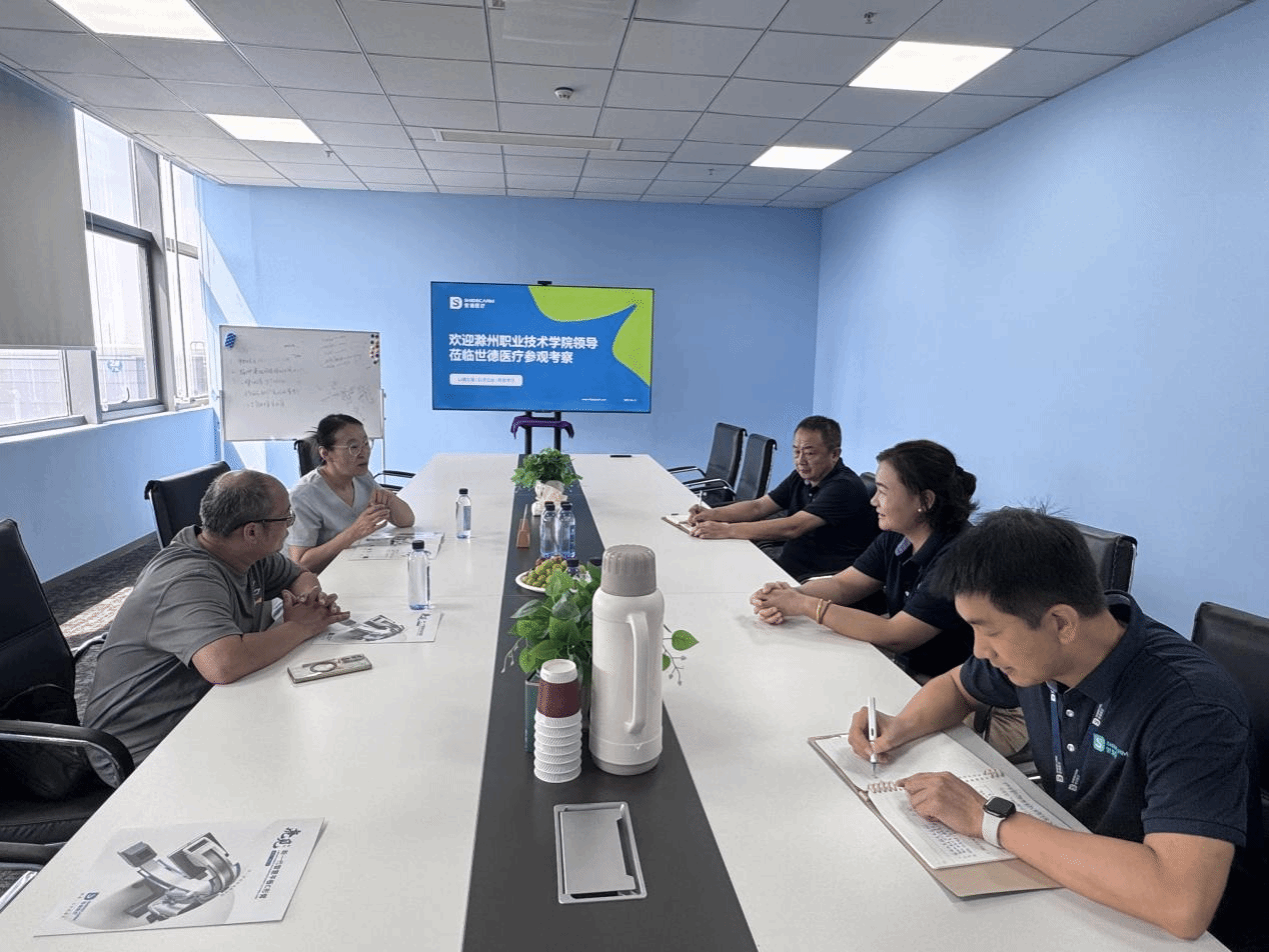 在世德医疗科技有限公司总经理刘渝的带领下,教师们走进企业展厅,参观企业在医疗电子领域的创新成果与技术应用,切身感受科技赋能医疗的行业趋势。