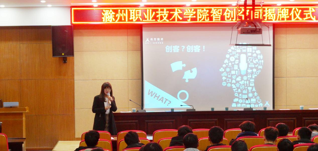 江洁副校长和姚勇副总裁一起为智创空间揭牌,宣布校园智创空间正式成立并启动创客初始化活动。