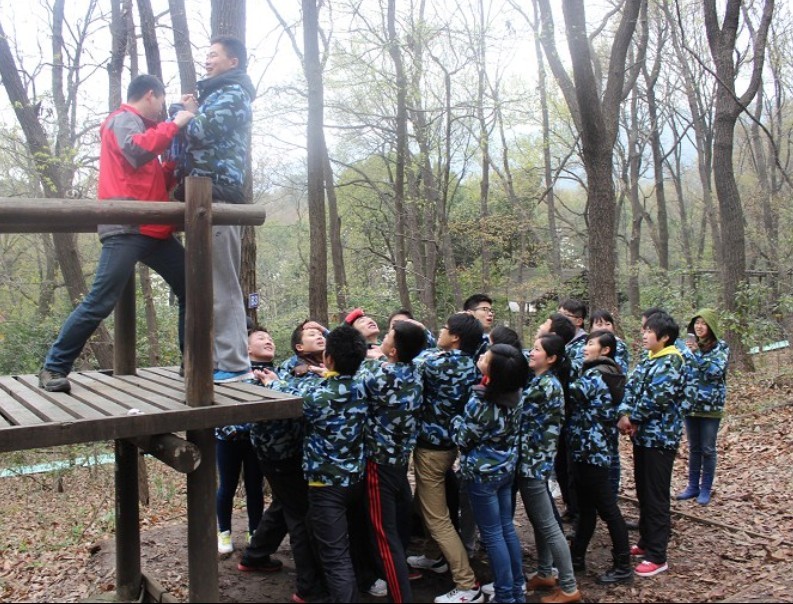 活动开始前王教练向同学们介绍了活动的目的和注意事项,开展了“人椅”活动的热身游戏,使大家更加了解彼此,接下来开展了需要考验胆量和相互配合的“信任背摔”,最后还开展了攀岩和越过4.08米的“高墙”。通过这些活动使同学们都学到了在课堂上所学不到的东西,达到了在游玩中学习,在学习中进步的目的。