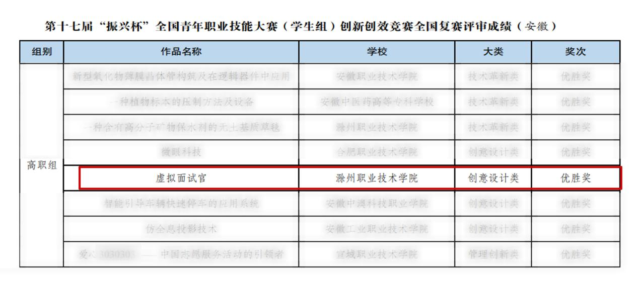近日,由传媒与设计学院薛梦琪、范文娟等老师指导、动漫专业5名学生参加的第十七届“振兴杯”全国青年职业技能大赛创新创效竞赛评审结果公布,我院学子的作品“虚拟面试官”获得国赛优胜奖。“振兴杯”全国青年职业技能大赛为国家级一类赛事,系2021年全国行业职业技能竞赛之一。以“跟党走实学实干 练技能成才报国”为主题,面向在校学生特别是各类职业院校学生开展。