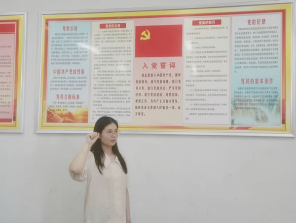 王星辰同志随后在党旗下宣誓,将继续提升政治素养、坚定政治站位,严格按照党员的标准要求自己,在自己的岗位上兢兢业业、勤勤恳恳,实现自我价值,积极发挥出共产党员的先锋模范作用。