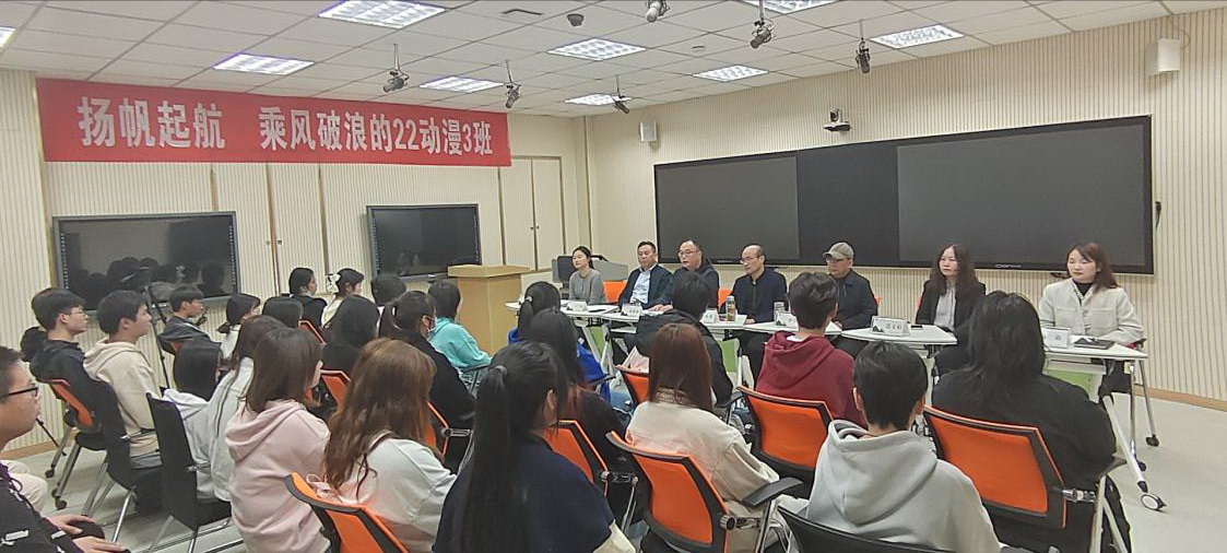 为迎接2022级新生,10月13日下午在金沙威尼斯欢乐娱人城德馨楼206教室开展动漫制作技术中外合作班新生开学典礼。国际交流合作中心主任李永泉,中外合作办学办公室主任李学军,传媒与设计学院党总支书记王广保、院长闻建强,数字媒体系主任李雯雯,动漫制作技术专业负责人范文娟,辅导员阚迪 ,老生代表以及2022级动漫制造技术中外合作班全体新生参加典礼。本次活动由闻建强主持。