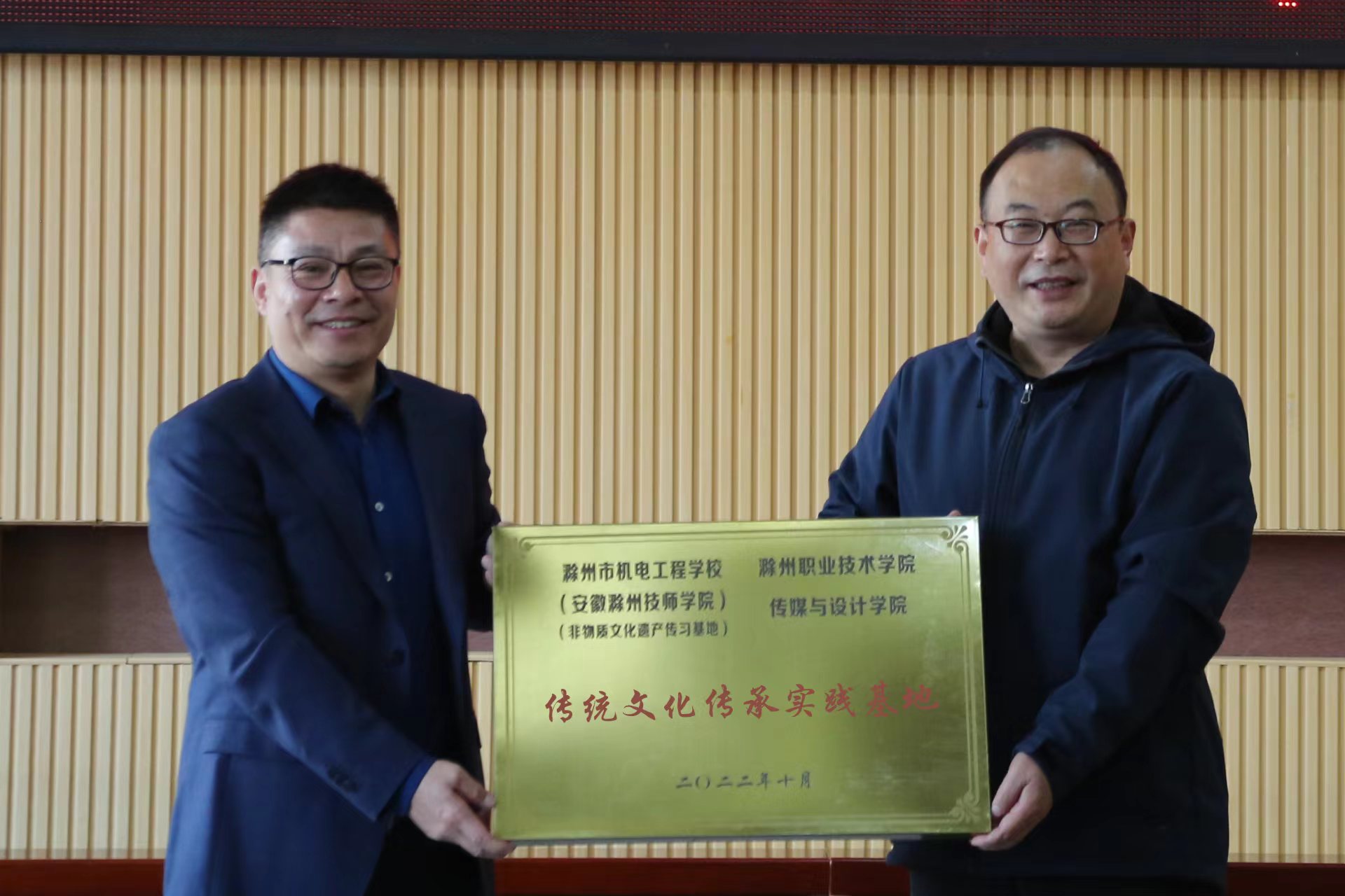 由传媒与设计学院与滁州市机电工程学校(安徽滁州技师学院)共建的“传统文化传承实践基地” 于10月28日揭牌。今后,双方将定期推出凤画教学和实践活动。
