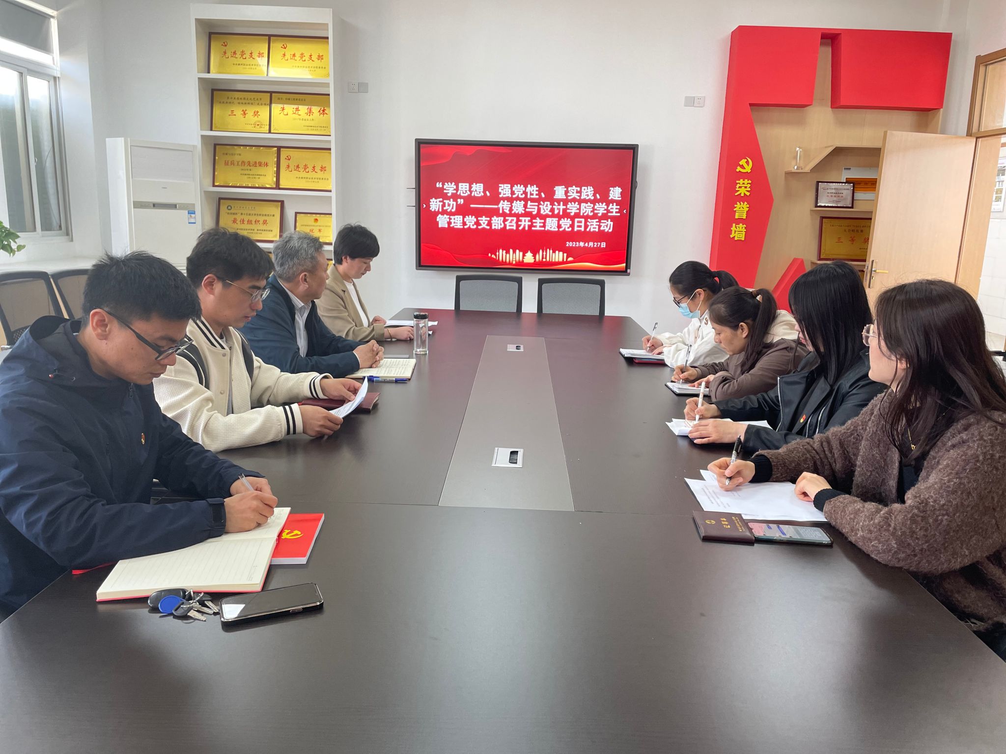 为深入学习贯彻习近平新时代中国特色社会主义思想主题教育工作会议精神,全面贯彻党的二十大精神,4月27日上午,传媒与设计学院学生管理党支部开展“学思想、强党性、重实践、建新功”主题党日活动。