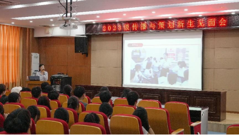 9月14日下午,传媒与设计学院2023级传播与策划专业介绍会在南阶205教室召开。会议由专业骨干教师陈潇潇主持,阚迪、张玥、匡卓凡、赵璇等9名专业教师,刘宁静、高元奎等5名2021级优秀学生代表参会分享经验。此次介绍会综合运用图片、视频、线上互动等多媒体手段,“形式”与“内容”皆具特色,直观地为新生展示了传播与策划的专业特点。