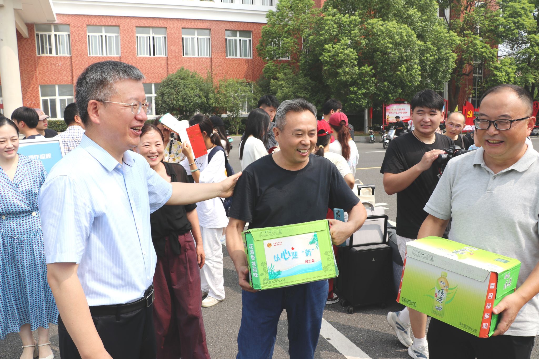 校党委书记曹付忠一行来到现场,开展迎新慰问,与新生、新生家长、辅导员老师、志愿者进行亲切交流,对新生和家长的问题进行耐心细致的解答,关心志愿者的相关情况,充分肯定志愿者们的奉献精神,鼓励志愿者们再接再厉,发挥志愿精神。