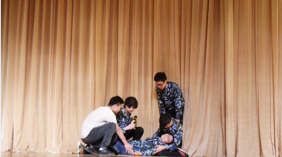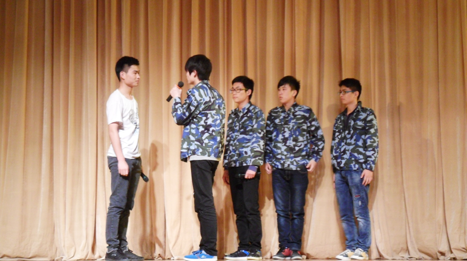 比赛时,演员们精彩用心的表演、绚丽的灯光和音效以及每个剧所要传达的深刻涵义,都给观众与评委留下了深刻映像。本系的演员们精彩的表演了“鸡蛋饼的故事”,赢得了观众的阵阵掌声及欢呼声。