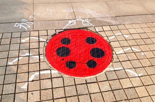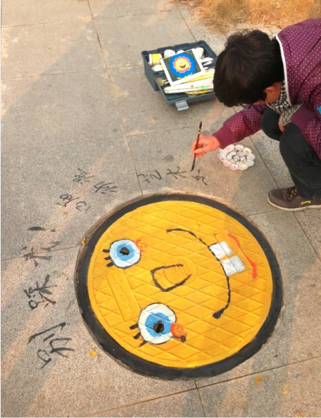 自12月开始,经历了一个星期的筹备,艺术设计系师生一起创意设计了各种造型的井盖图案,经过筛选,选出部分图案进行绘制,有蜘蛛侠爬出井盖,有机器猫造型,有七星瓢虫,蜜蜂等各种卡通造型图案,非常有趣美观,12月18日上午开始,艺术系同学们开始带着颜料画笔等工具在校园中心广场的地面上进行了十只井盖的创意绘制,引来了很多同学的驻足欣赏。并发出啧啧赞叹!