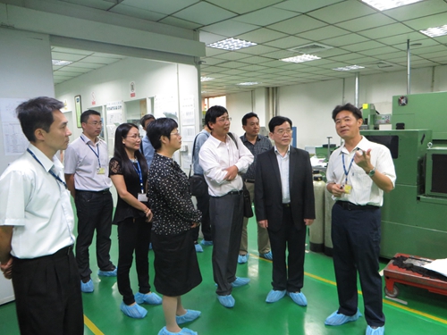 台湾顺德工业(江苏)有限公司副总裁卓世雕热情接待李院长一行,双方互相介绍校企情况,表达了此次调研的目的,并兴致勃勃的参观各生产车间。