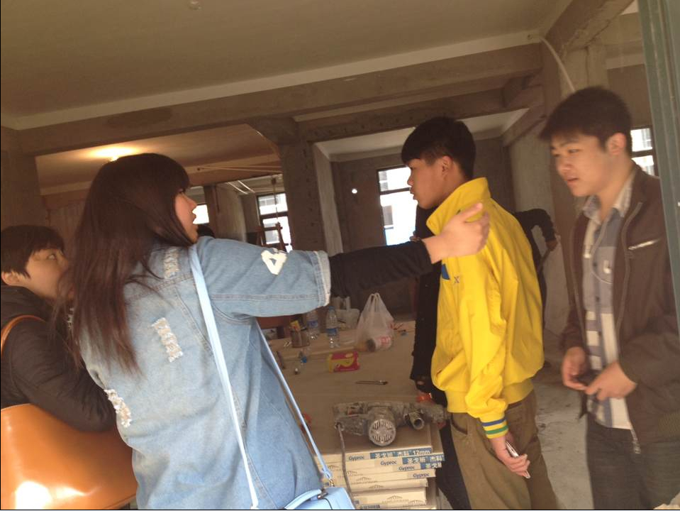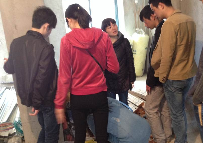本次的学习任务是装饰装修的隐蔽工程,大家跟随着老师来到11幢102室。开始,老师拿到这套房子施工图,给大家讲解施工中的要点和难点。同学们认真聆听,时而快速笔记,唯恐漏掉平日在课本根本无从了解的知识。