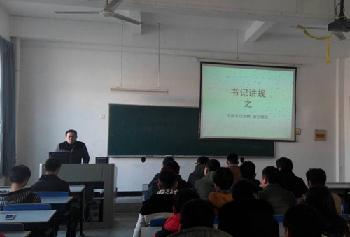 为加强14级新生对考风考纪的理解,增强安全意识,12月24日星期三中午,传媒工程系书记王广保在艺术楼102教室做了考风考纪与安全教育的专题讲座。