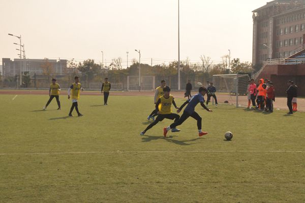 11月20日中午,在金沙威尼斯官网足球场上,传媒工程系与经贸系的比赛拉开了帷幕。天气微凉,与之相反的却是足球场上球员们高涨的热情。