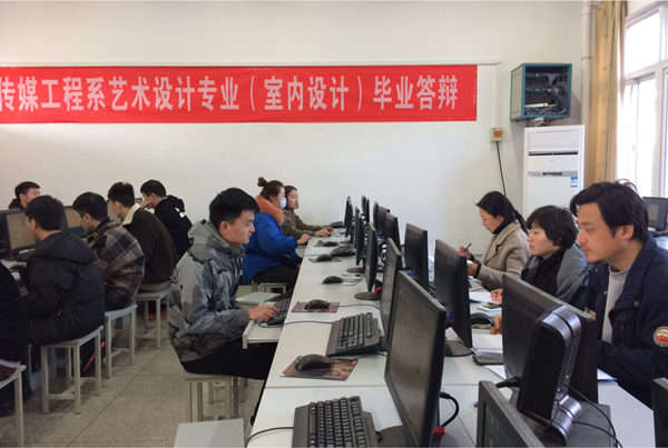 2017年11月23日上午,传媒工程系2018届室内设计专业毕业答辩工作在德馨楼204机房拉开帷幕。