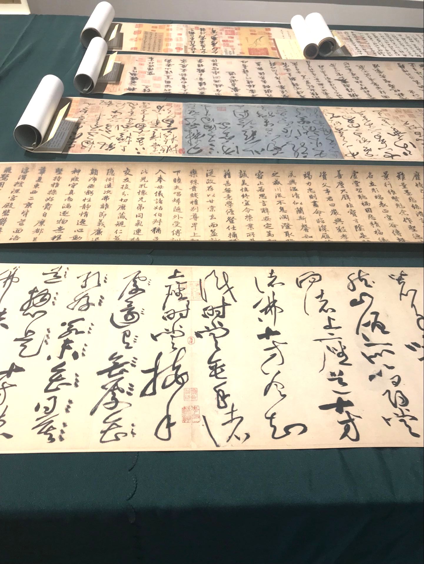 展馆中的展品包括宋代王希孟《千里江山图》、张择端《清明上河图》等山水、人物、花鸟和部分书法古帖等复原图,传媒系教师们本着学习的态度认真参观研究各幅作品。
