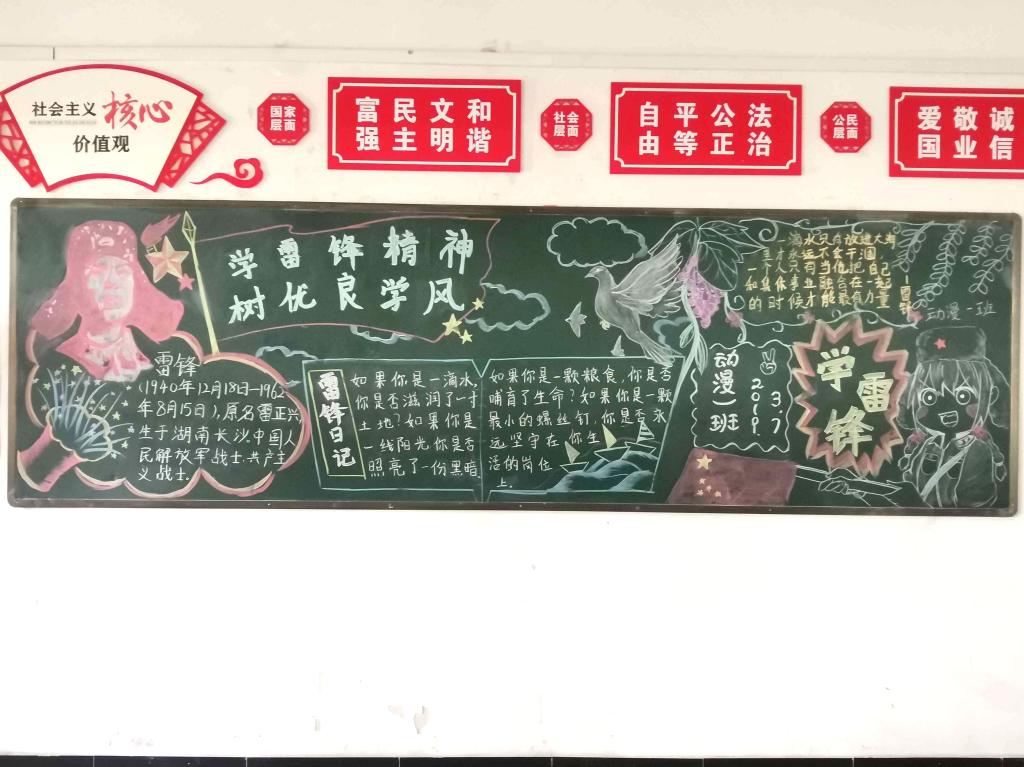 本次黑板报以“雷锋月”为主题,各班级在班干的带领下积极准备、认真设计,按时完成黑板报。 每份板报所展示的内容都基本紧贴主题、创意新颖、版面布局合理。