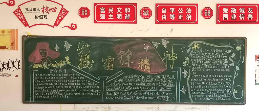 为进一步学习雷锋精神,弘扬中华传统美德,传播志愿服务理念,帮助大学生树立正确的世界观、人生观、价值观。传媒系学生会在各班级开展绘制雷锋月黑板报活动。