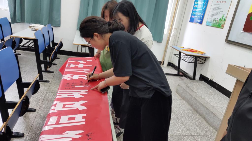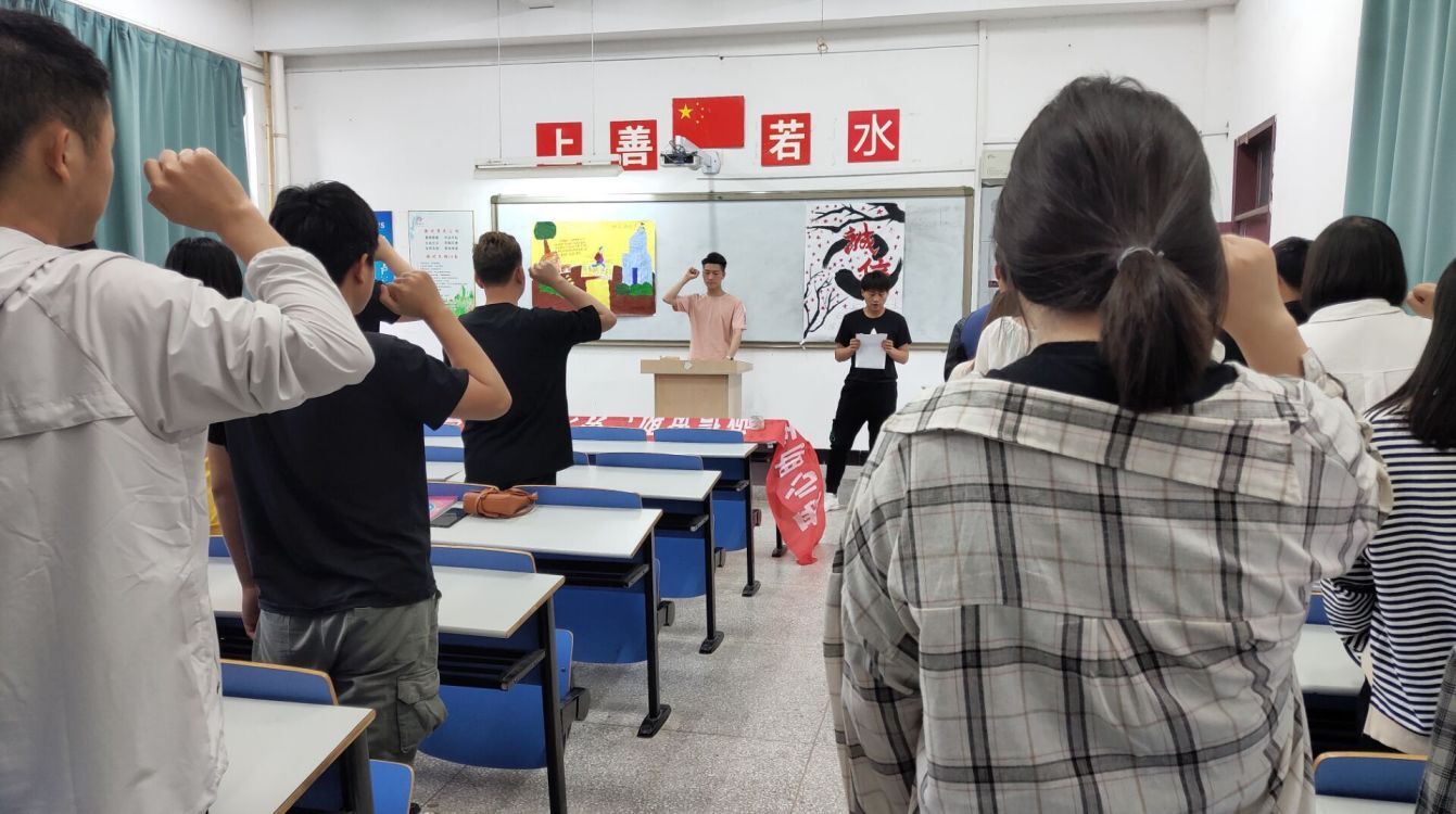 会议伊始,各个学生在横幅上签名承诺,随后卢开新宣读了相关文件,要求大家要积极参加有关诚信资助的各项活动,最后由学生代表上台带领同学们进行宣誓。