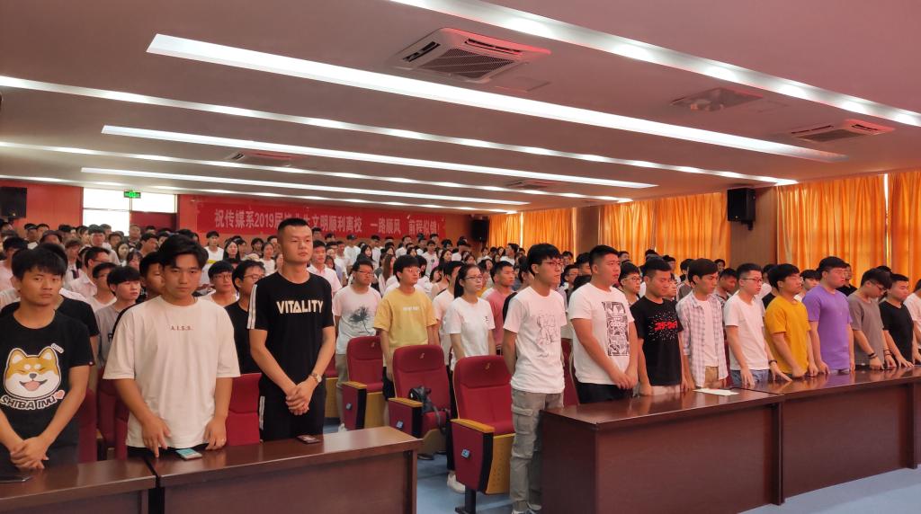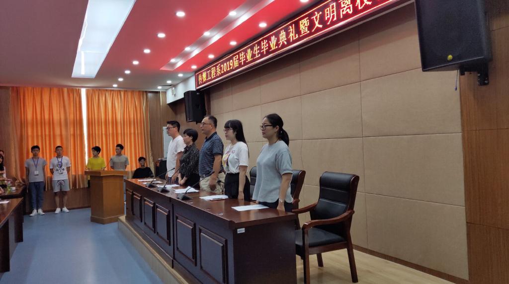 6月25号下午1点,传媒工程系隆重举办2019届毕业生毕业典礼暨文明离校教育。传媒工程系闻建强主任、党总支秘书沈倩倩、团总支书记瞿康宁、教师马庆峰和刘娟与我系16级350余名毕业生共同参加了本次仪式。仪式由刘娟老师主持。