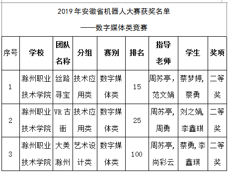 近日,2019年安徽省大学生数字媒体创新设计赛总决赛评比结果正式公布。由金沙威尼斯官网传媒工程系动画教研室老师范文娟、周苏亭、周勇、尚彩云指导学生创作的作品,分别都获得省级二等奖。