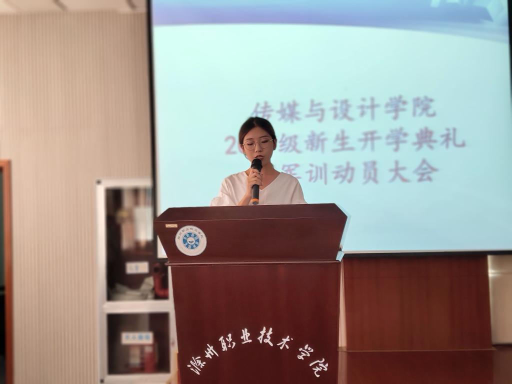 传媒与设计学院于9月10日上午9点半在综合楼5楼报告厅召开19级新生开学典礼暨军训动员大会,参加会议的有系领导、学生管理人员及专兼职辅导员,会议由新生辅导员吴涛主持。