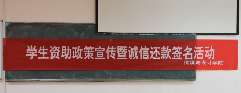 为加强大学生资助政策,普及资助知识,传媒与设计学院于 11月22日中午,在南阶103开展了资助政策宣传暨诚信还款签名活动,本次活动由学生会副主席杜昌天主持,学院三个年级受资助学生参会。