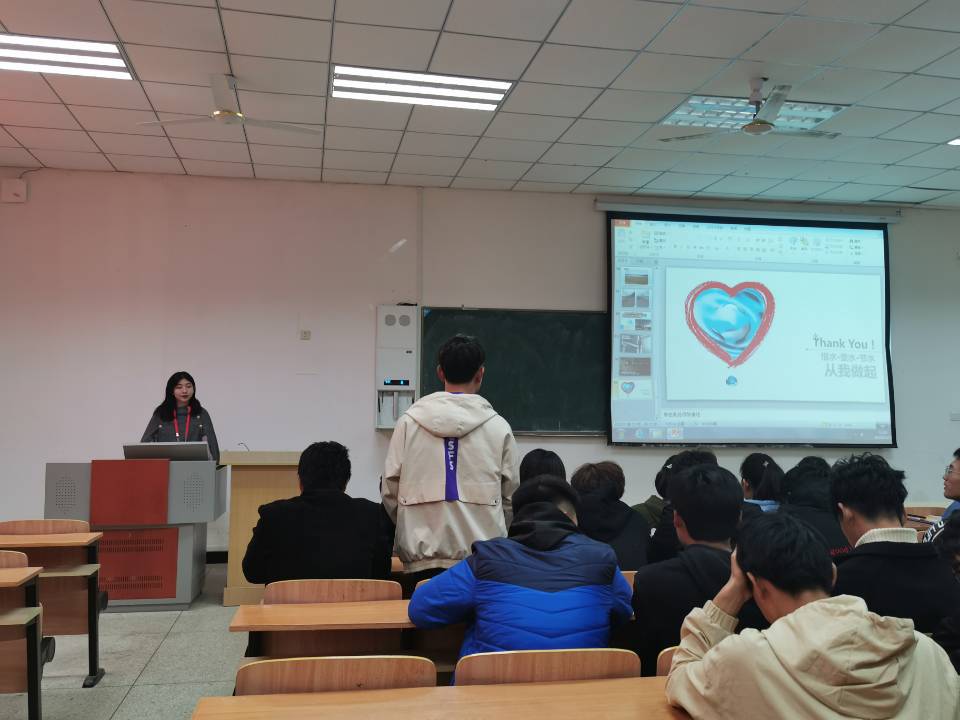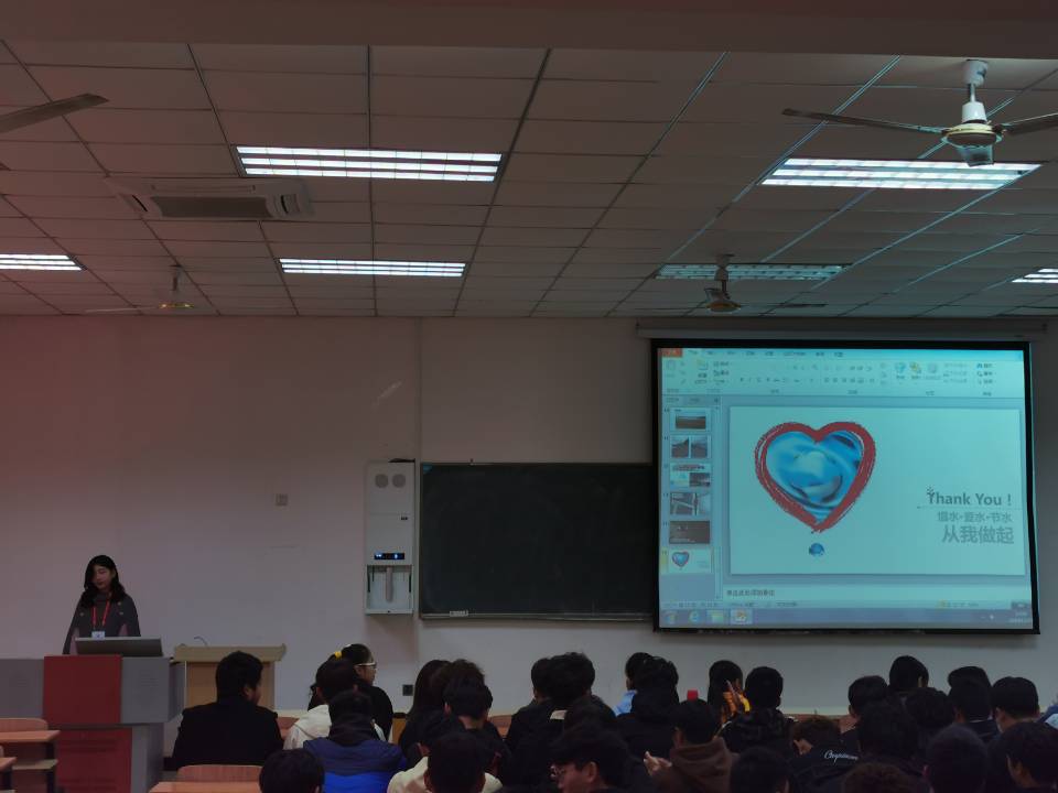 此次活动由学生会副主席钱思思主持,通过PPT、海报和发放传单形式向同学们普及关于节约用水和水资源短缺等知识,增强大家“节约用水,保护水资源”的意识。活动中主持人与同学互动充分营造了保护水资源的氛围。钱思思号召同学们以后多了解水在人类生活中的作用,以及地球上的水资源情况,从自己身边的生活小事做起,节约用水,科学合理用水。
