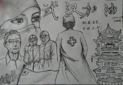 我院学生用手绘的方式,力挺一线战“疫”医护人员,向那些在战“疫”一线的工作者表达敬意。武汉加油!你的背后是强大的中国和团结一致的全国人民。