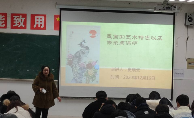 通过讲座,同学们对非物质文化遗产——凤阳凤画有了更深的了解,同时增强了热爱中华传统文化、保护非物质文化遗产的意识。