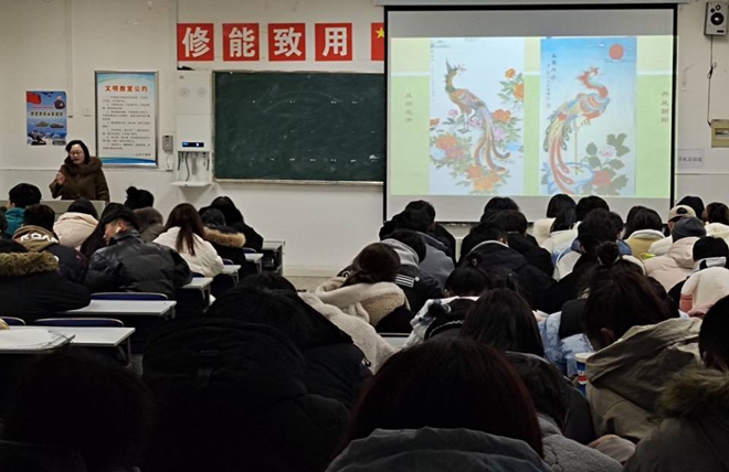 为了弘扬中华传统文化,增强大学生保护非物质文化遗产的意识,传媒与设计学院于12月16日在致学楼4119室举办了一场题为“凤阳凤画的艺术特色以及传承与保护”讲座,本次讲座由史晓云副教授主讲,建筑工程学院、传媒与设计学院100多位学生到场聆听。
