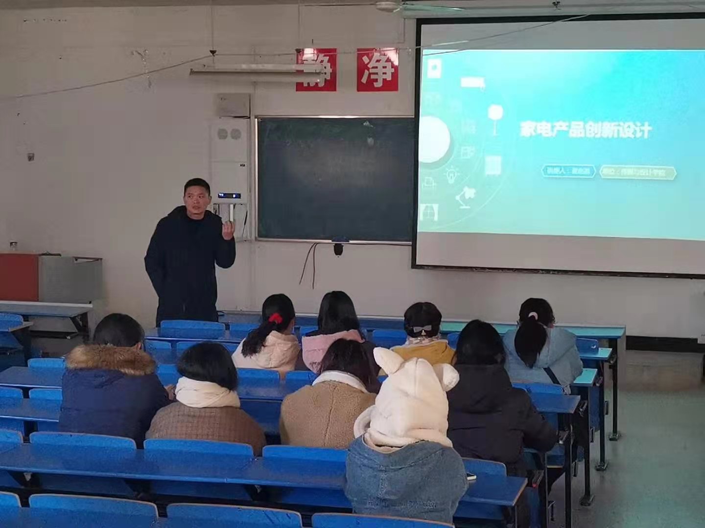 2020年12月30日下午2时,传媒与设计学院蔡忠弟副教授在北阶206多媒体教室,举办题为“家电产品创新设计”的讲座,传媒与设计学院2020级工业设计、艺术设计、室内艺术设计等百余名学生及相关教师听取了讲座。