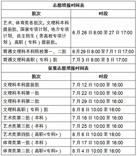 2019年安徽省志愿填报时间