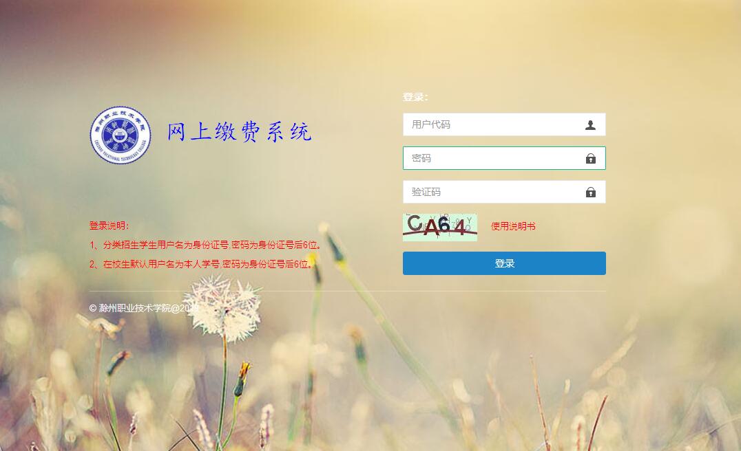 首先,请考生使用本人身份证登录网站(http://cwc.chzc.edu.cn/wsjf/login),查询个人信息,密码为身份证后6为,请注意个人隐私保护。