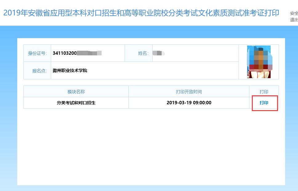 2019年安徽省分类考试招生全省文化素质测试统一考试的准考证可以自行上网打印了,不需要到报名点领取。如果考生不方便打印,可以到报名点打印。具体打印方法如下: