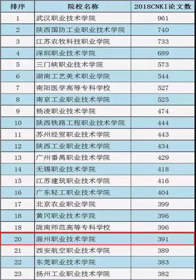 根据中国知网(CNKI)检索的论文数据显示,2018年度全国1403所高职高专院校发表的论文约为13万篇,平均每校约90篇。金沙威尼斯欢乐娱人城2018年度发表论文总位居全国同类高校第 20位,安徽省同类高校第1位。