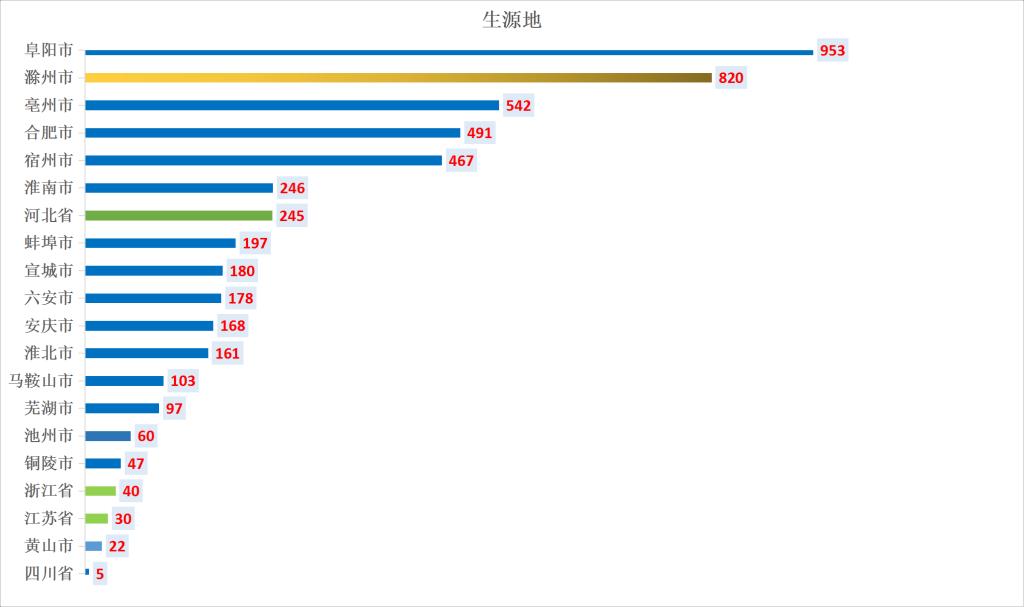 从生源地来看,4732名考生来自安徽16各地市,占录取总数的93.6%,其中录取人数最多的是阜阳市,来自滁州本地的考生有820人。另有320人分别来自河北、浙江、江苏、四川等省份。