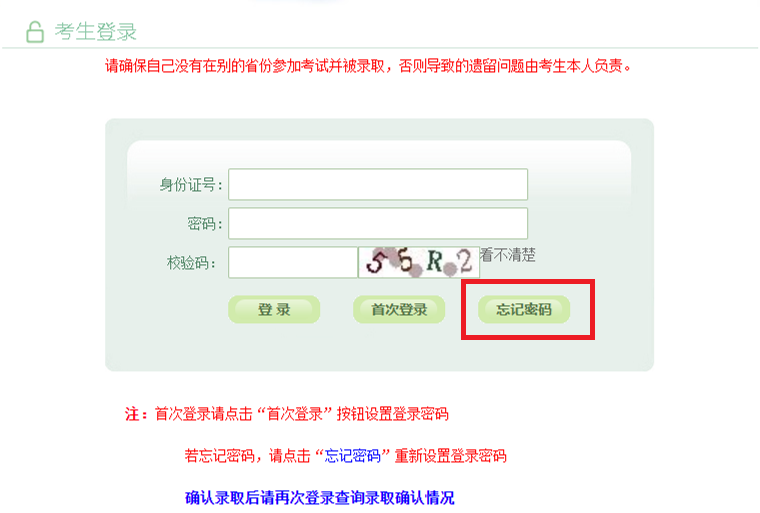 2. 用自己设定的密码重新登录,进入录取院校确认界面: