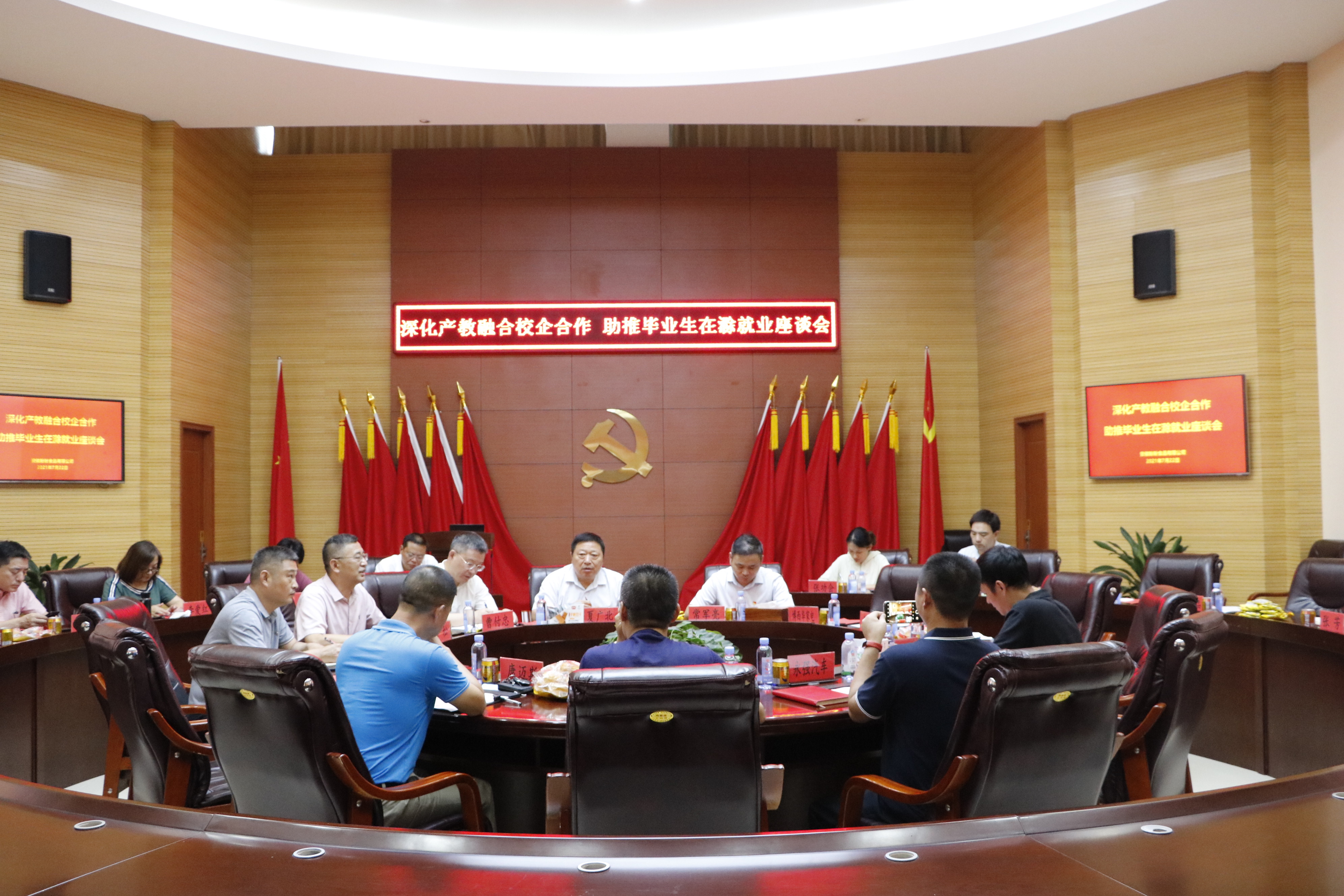 为深化产教融合、校企合作,7月22日下午,校党委书记曹付忠赴安徽盼盼食品有限公司走访调研并举行座谈会,滁州经济技术开发区二级调研员夏广北及相关企业领导热情接待。校党委委员、校长助理、招生就业处处长穆松,教务处、招生就业处、科技处、继续教育学院、电气工程学院、食品与环境工程学院等部门有关负责同志陪同调研。参会企业有安徽盼盼食品有限公司、博西华家用电器有限公司、滁州惠科光电有限公司、安徽东鹏食品饮料有限公司、滁州扬子空调器有限公司、滁州永强汽车制造有限公司、滁州长电科技有限公司、安徽银鹭食品有限公司、滁州养元饮品有限公司、康迈斯(滁州)机电有限公司、滁州市博悦模塑科技有限公司。