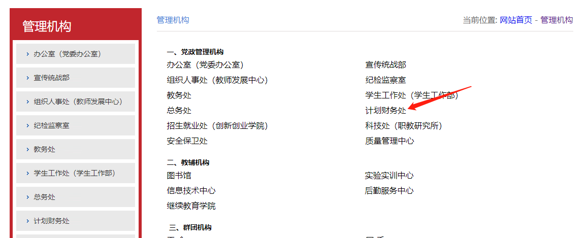 2.在管理机构中点击“计划财务处”,如图1-2:
