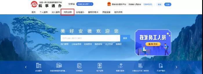 4. 登录后在网页顶端找到“特色创新”栏目,点击进入。
