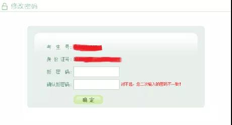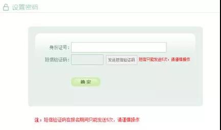 输入考生号,身份证号,点击“发送短信验证码”按钮后,系统会随机发送6位数字验证码至考生报名时所填的手机号上;填写完短信验证码,点击“确定”,跳转至考生修改密码页面,设置考生登录密码。切勿将短信验证码告知无关人员。