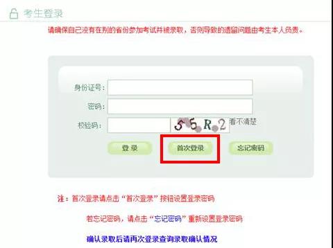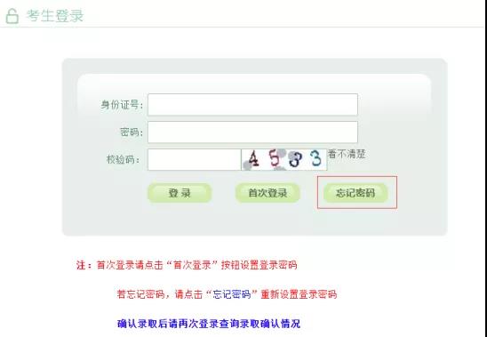 2. 用自己设定的密码重新登录,进入录取院校确认界面: