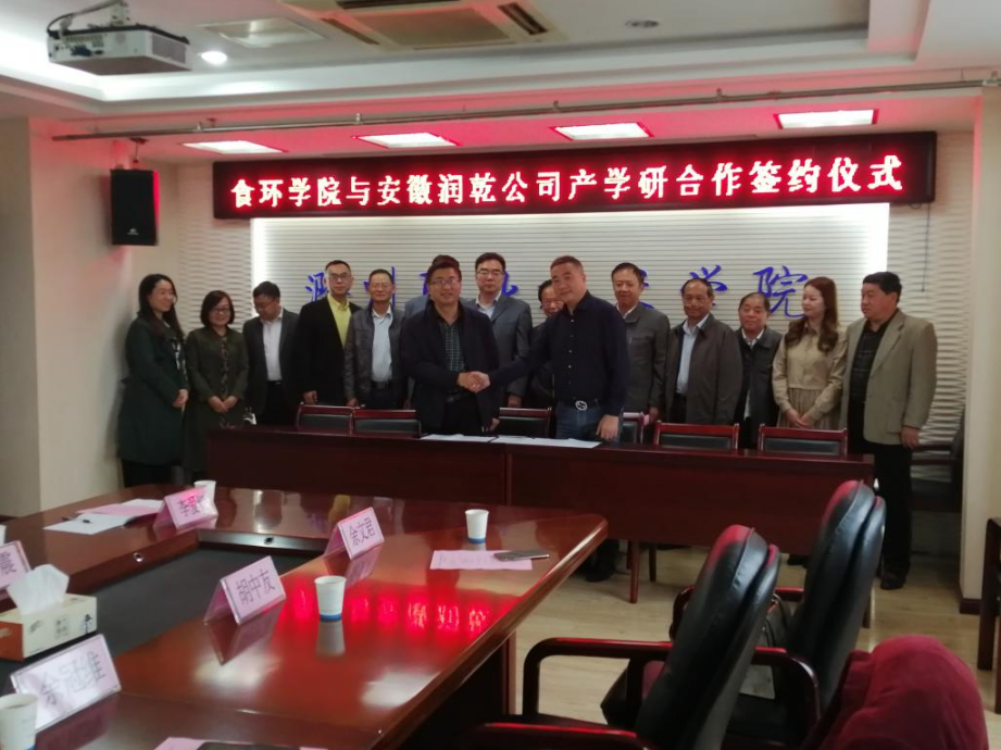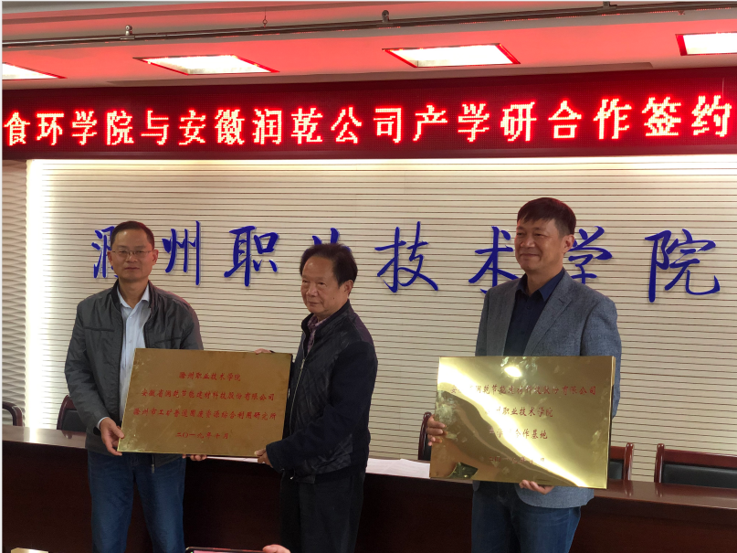10月22日下午,食品与环境工程学院与安徽省润乾节能建材科技股份有限公司在行政楼804会议室就“工矿普通固废循环利用研发”项目签署了产学研合作框架协议。