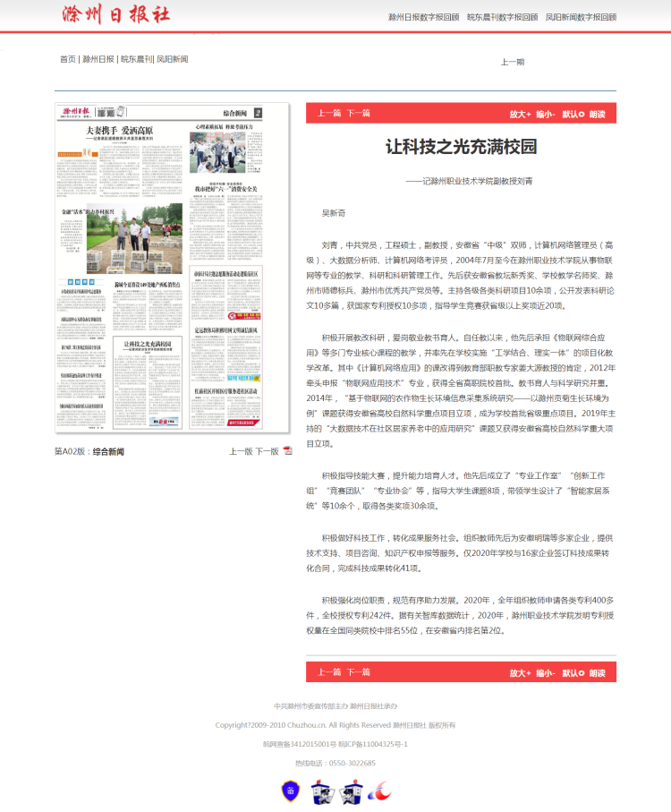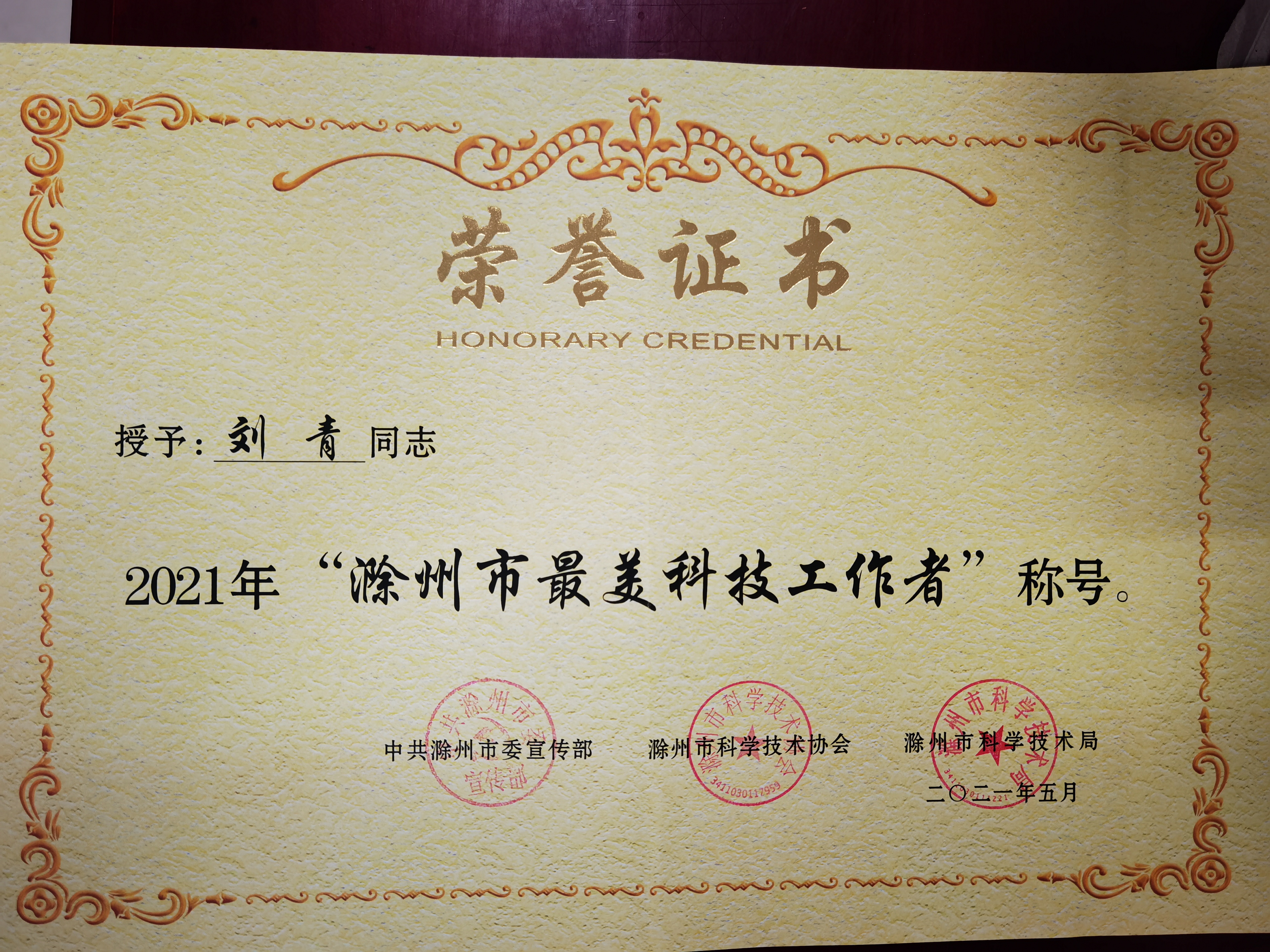 由中共滁州市委宣传部、滁州市科协和滁州市科技局组织的2021年度“滁州市最美科技工作者”评审结果近日揭晓,金沙威尼斯官网信息工程学院刘青老师获评为2021年度“滁州市最美科技工作者。